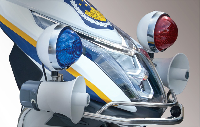 大功率警用喇叭与爆闪警灯组合在一起,声域宽广、清晰嘹亮,尽显威严之势。