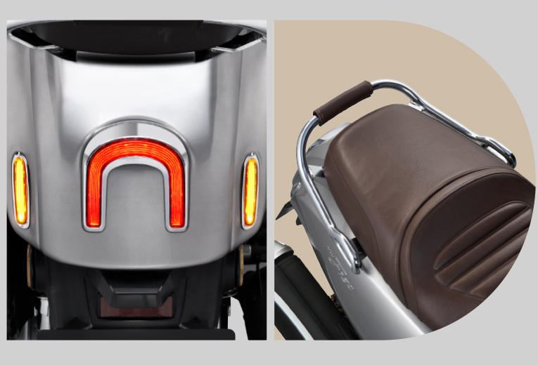 马蹄造型的后尾灯+上翘马鞍后扶手