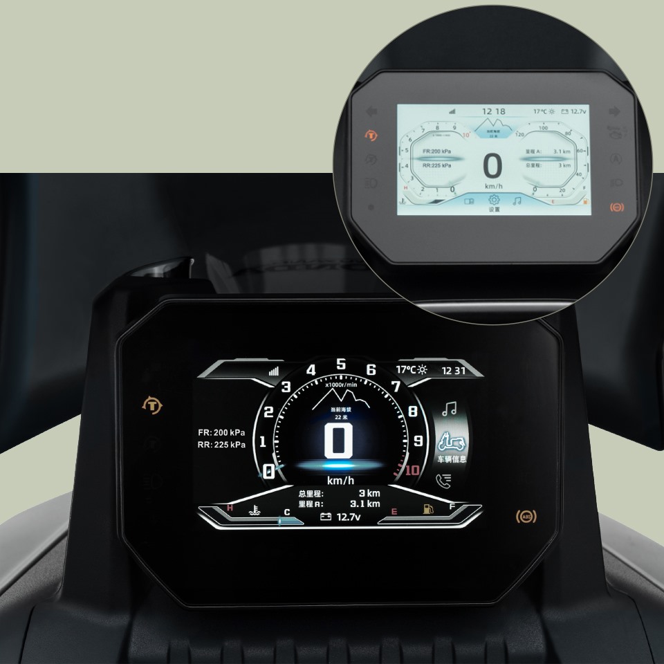 带氛围灯 “随心转”圆环滚轮式菜单键,双闪灯、超车灯、TCS按钮、DJI运动相机互联等,多种功能一应俱全