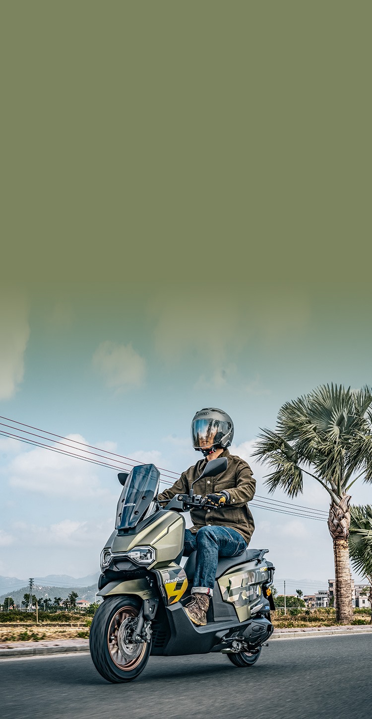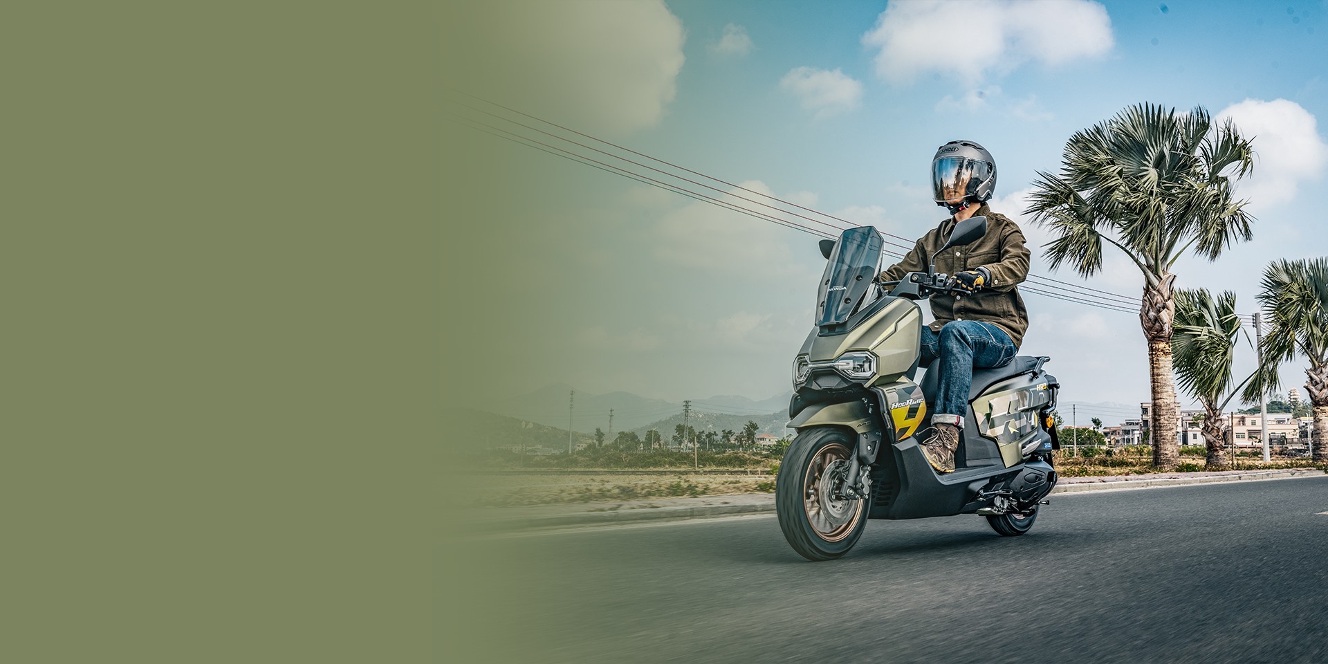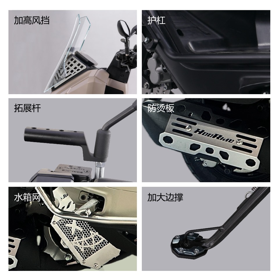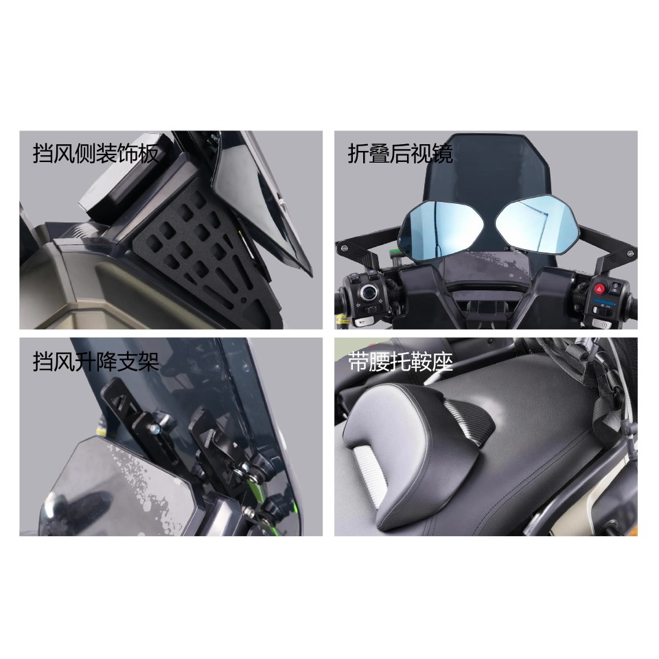 两档可调节,挡风罩顶部离地高度1180mm/1205mm,强效阻隔迎面风,机甲造型贴合车身,提升整车气场与高级感