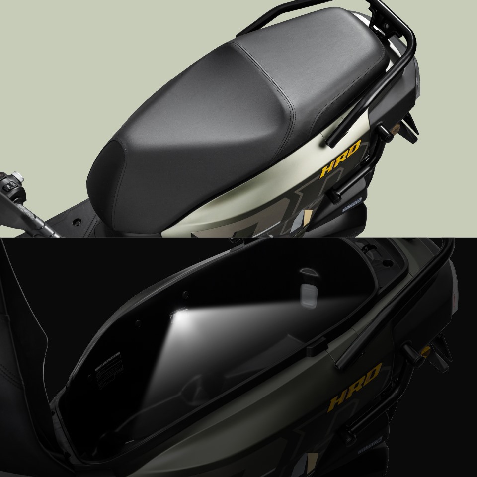 650mm鞍座长度,满足2人乘骑及后座置物的需求;760mm座高,对女生也很友好;座桶灯自动亮起,内部物品一目了然