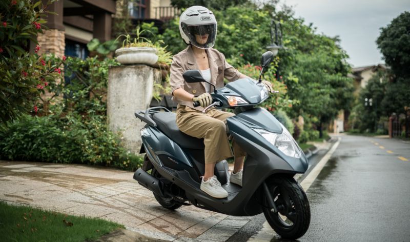 流线型的身形、细长的前围设计、温润柔和的V型前脸设计,拉满了Spacy125的现代感和高级感。