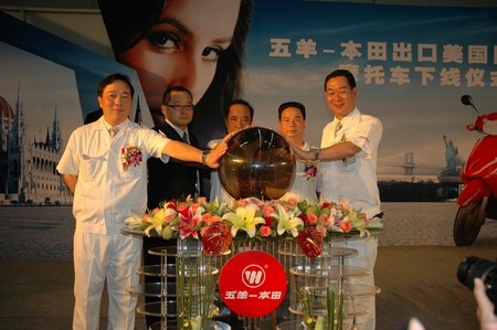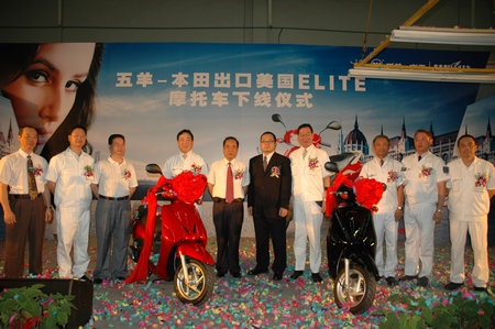 2009年6月8日上午,本田第一辆110CC的专供美国市场的ELITE(精英)踏板车在五羊-本田工场隆重亮相。五羊-本田为此举行了隆重的出口美国摩托车ELITE(精英)下线仪式。广州汽车工业集团有限公司董事、副总经理、广州摩托集团公司董事长、五羊-本田公司董事长焦家民先生,本田技研工业(中国)有限公司总经理林田武人先生及广州增城市对外贸易经济合作局副局长姚单淦先生出席了下线仪式。